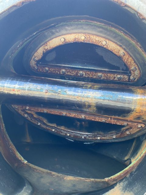 部材を撤去した後は、フランジ面の清掃を丁寧に行いました。古いガスケットの残留物やサビを除去し、新設機器の取り付けに備えて接続面を整えています。また、開口部には養生を施し、異物の混入を防ぐとともに、次工程までの安全を確保しました。