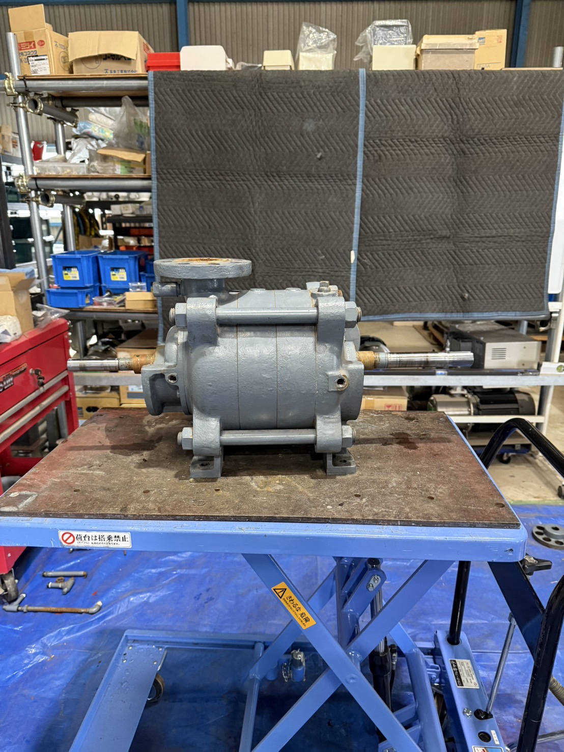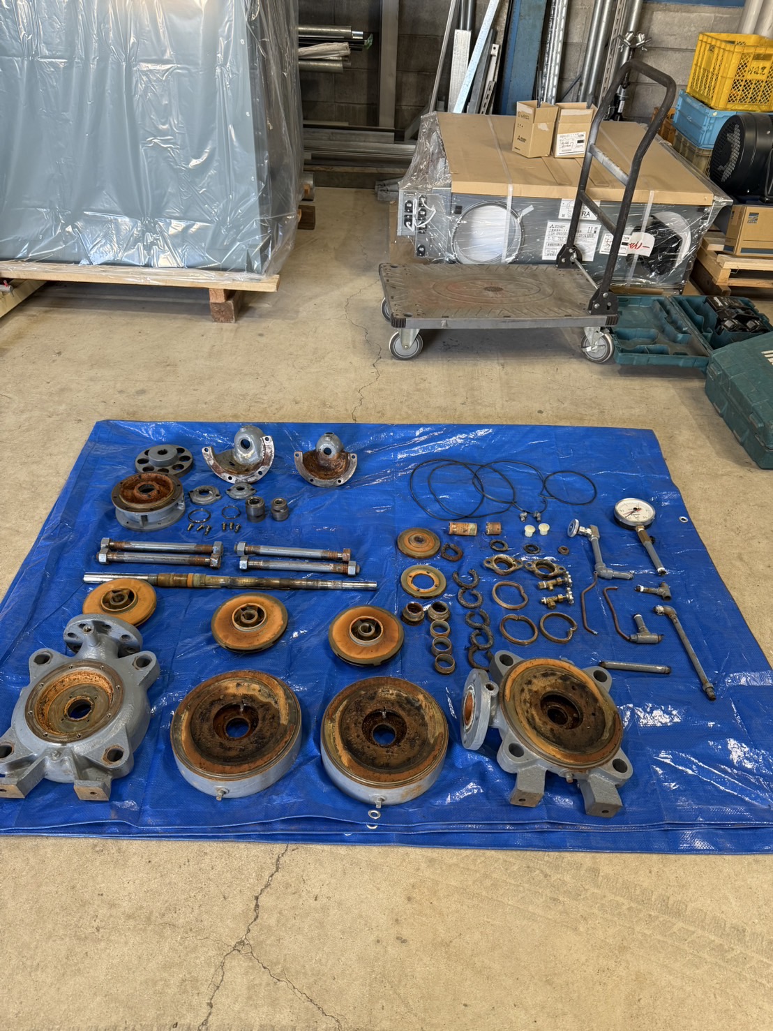 某所において、多段送水ポンプの分解整備工事を実施いたしました。