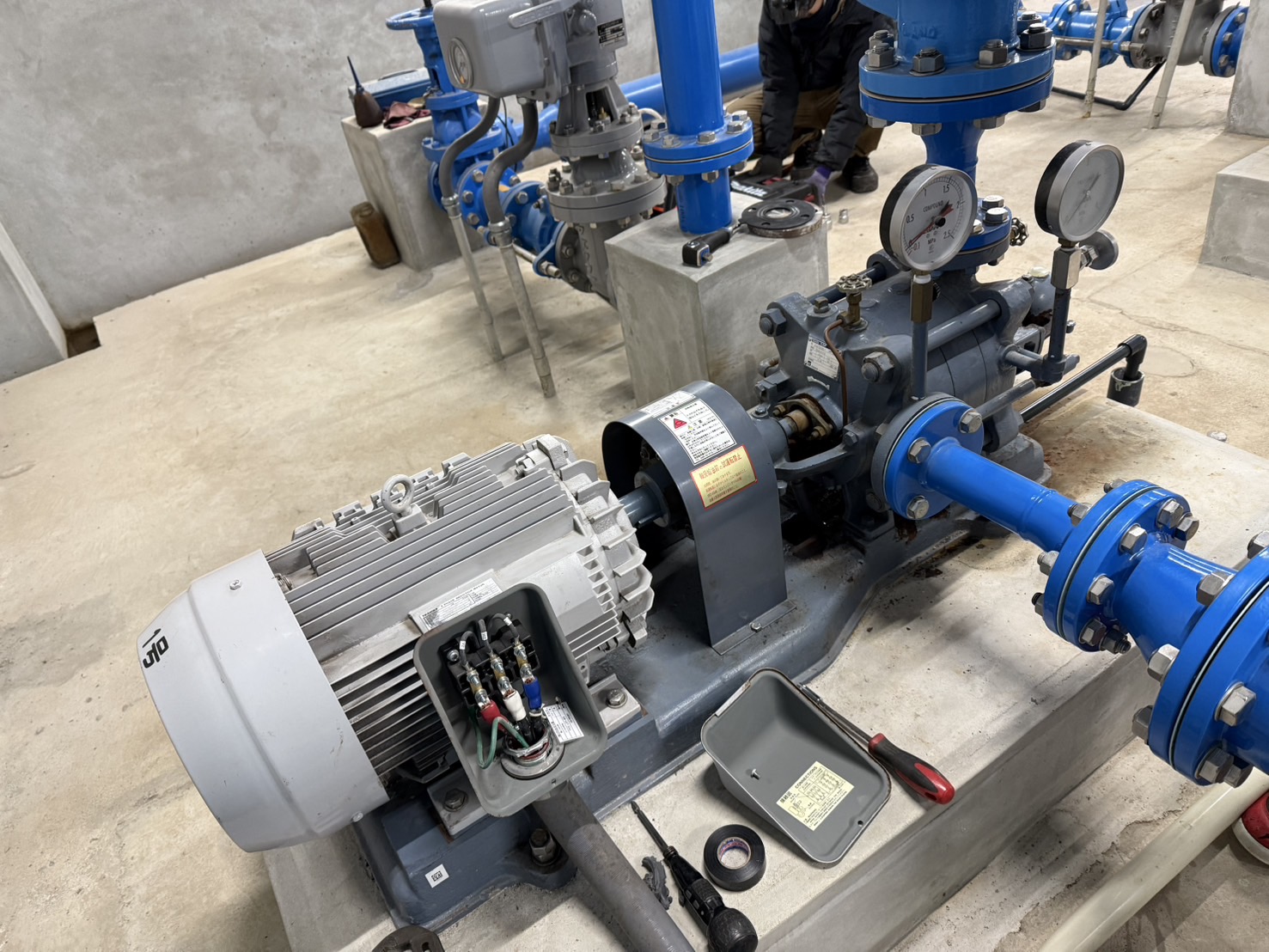 今回の工事は、既存の多段送水ポンプを分解点検し、消耗部品の交換や調整を行い、最適な送水性能を確保するポンプ整備事業でした。